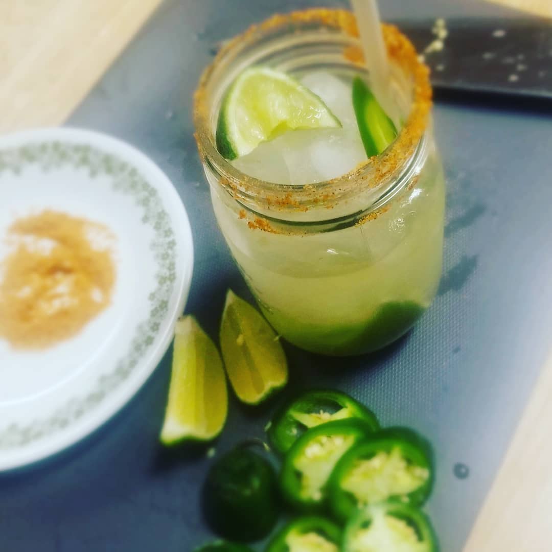 Rub a lime around the rim of your glass and then dip the rim in "Down the Hatch" green chili salt